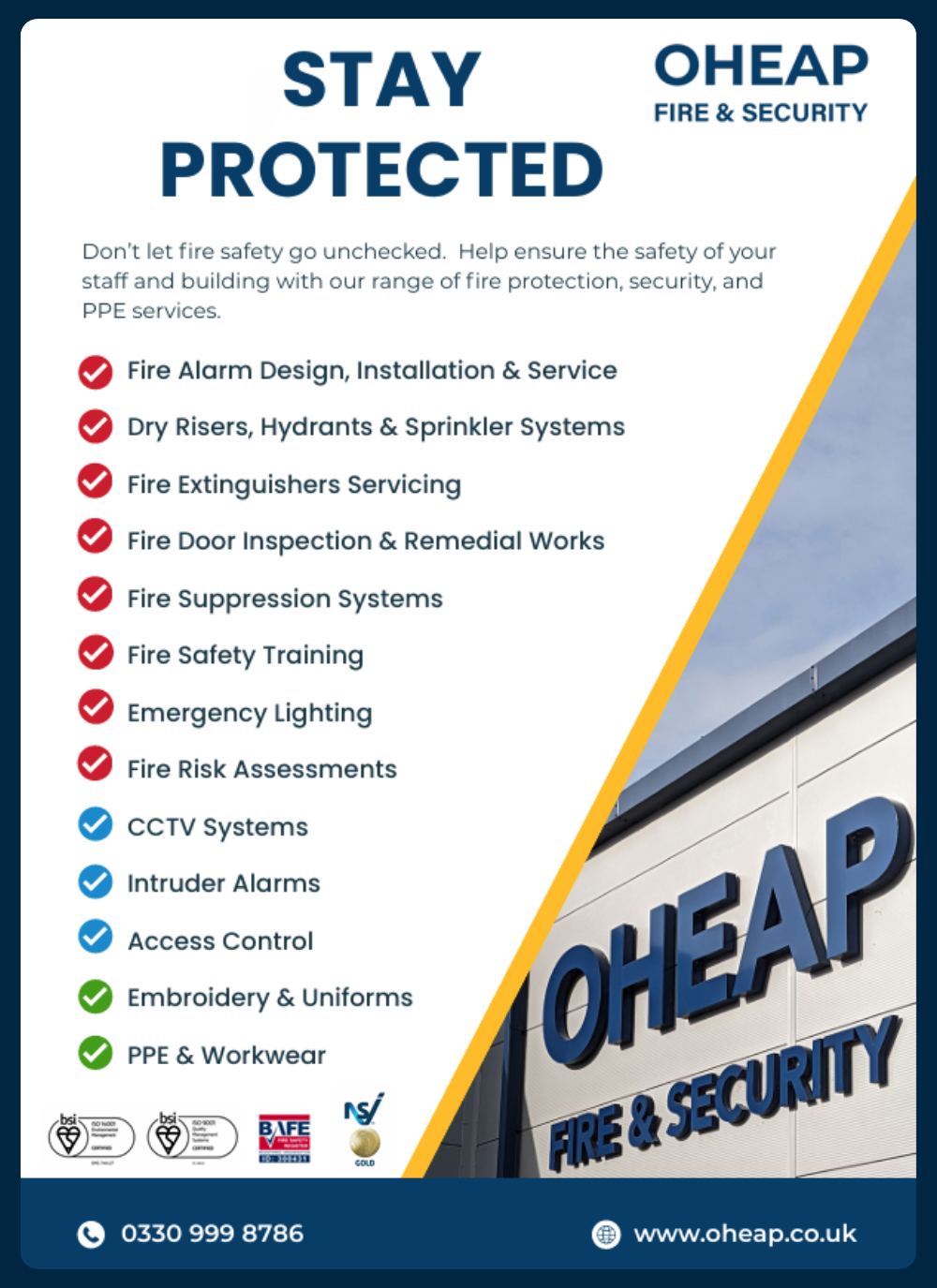 At OHEAP we strive to provide everything you need to protect against the risk of fire. Whether you need a fire risk assessment carried out, your fire extinguishers annually serviced or a new fire detection system installed, we are here to help you stay safe.